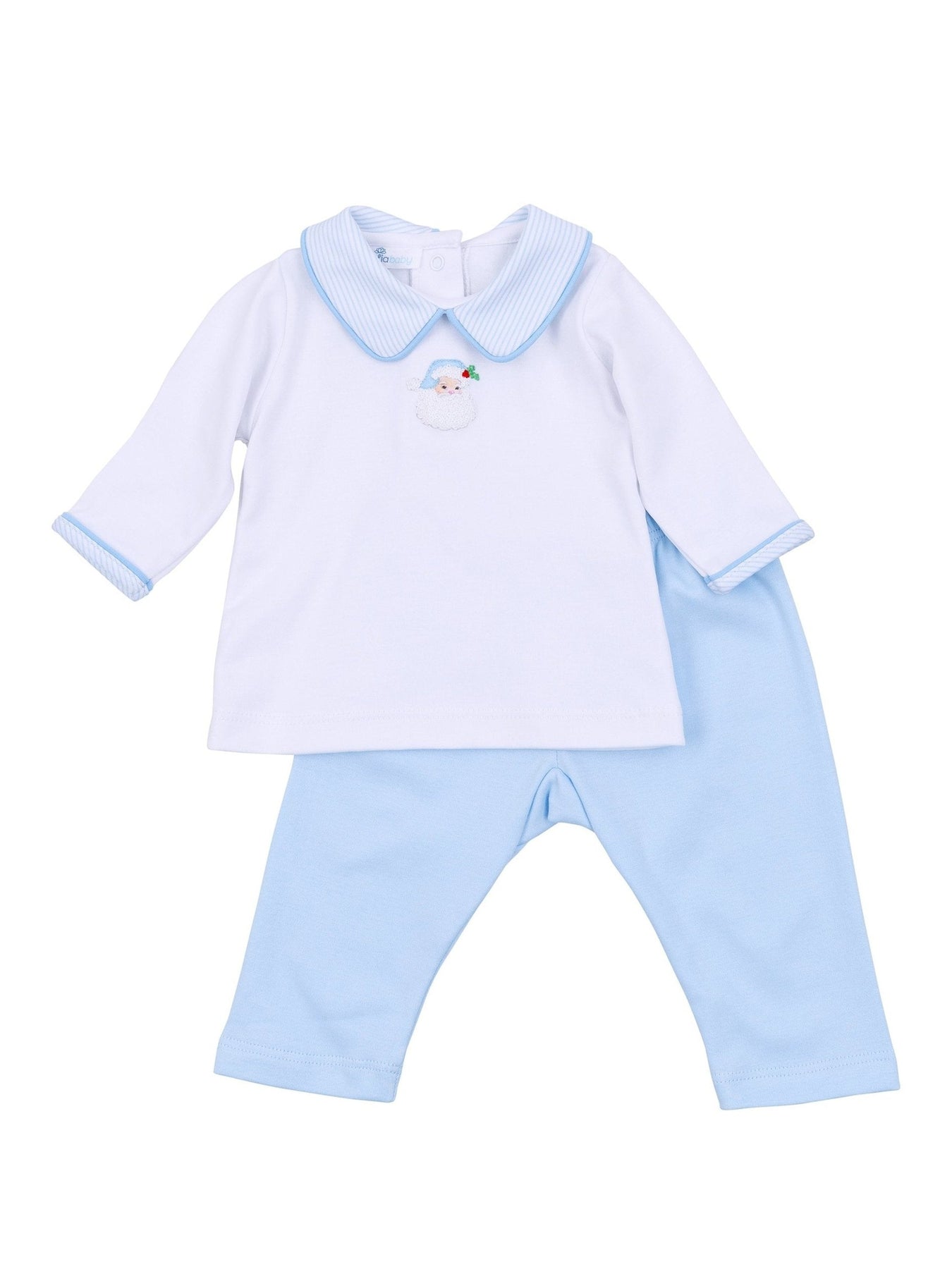 Santa Baby Collared 2 pc Pant Set - Light Blue