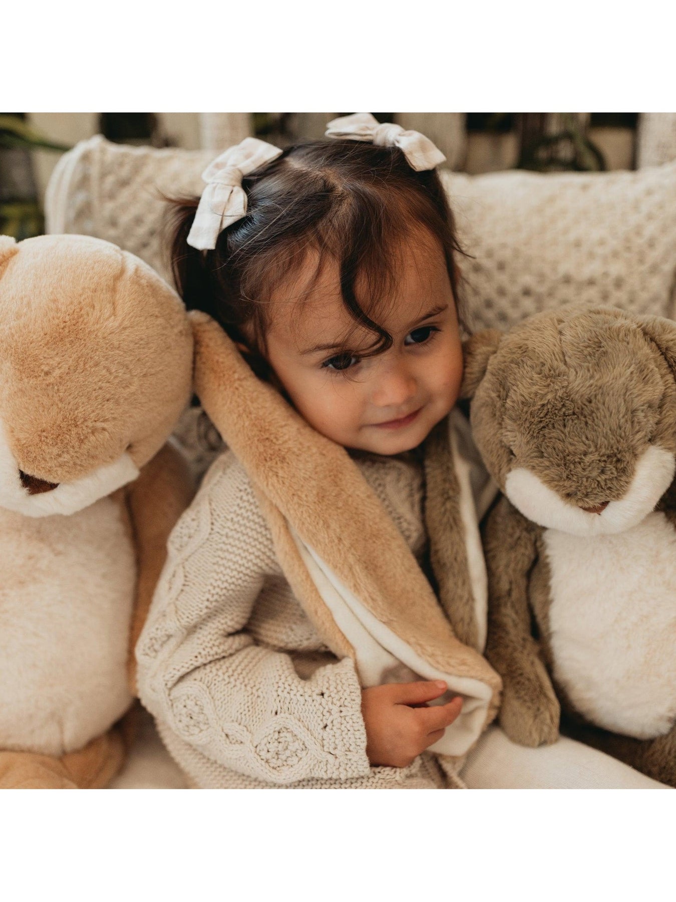 Made with luxurious fur and warm white details, this bunny is the perfect cuddle companion for babies, toddlers, and kids of all ages. Its velour-lined ears are silky soft and can even be personalized, making it a treasured baby shower gift, Easter surprise, or timeless nursery keepsake.