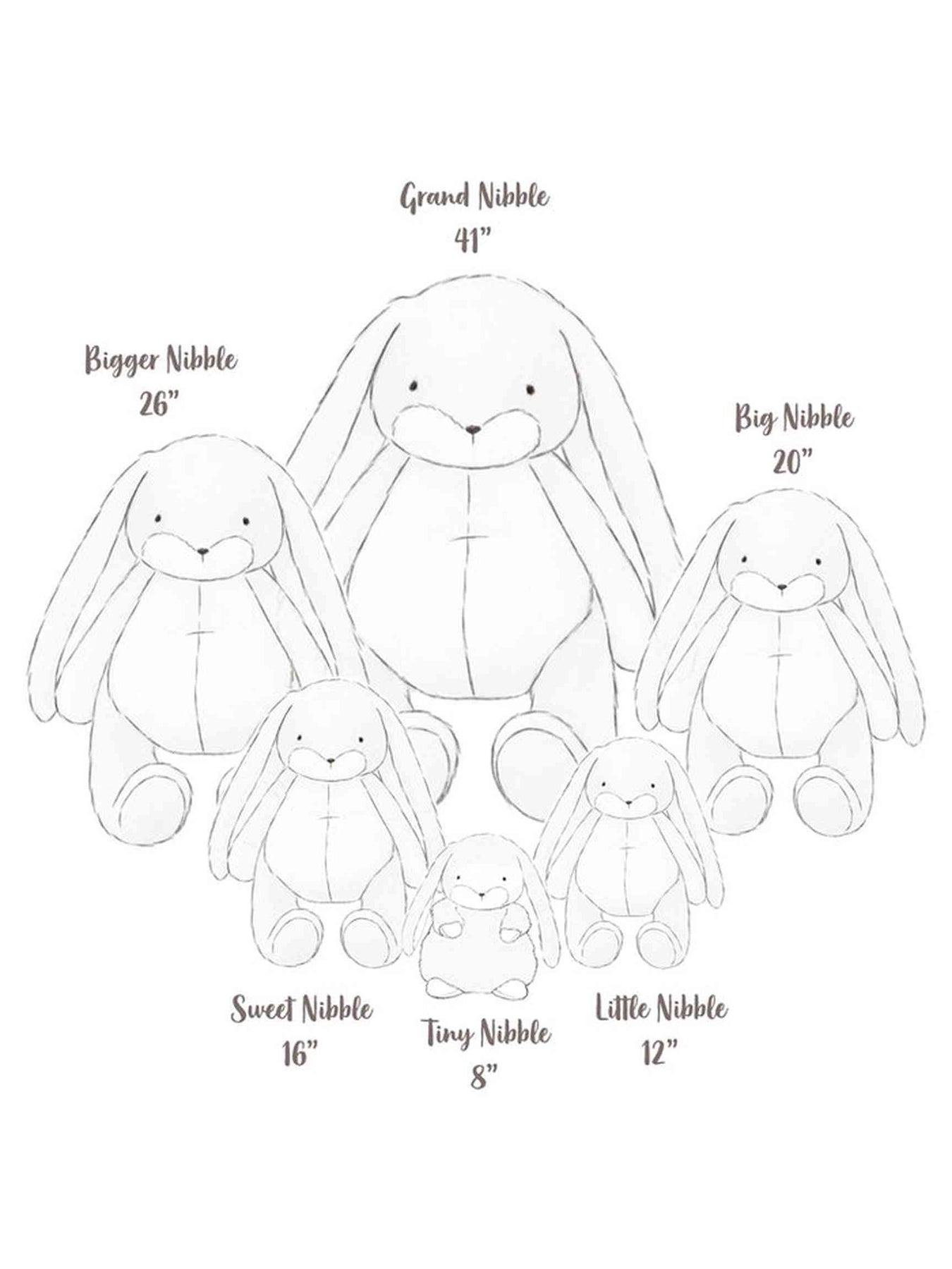 Regular price $72.95Meet Big Floppy Nibble Bunny, the bunny that hugs you back! Huggable, luggable and simply adorable. Nibble’s long lop ears are buttery soft and perfect for soothing away worries. With arms, legs and ears that are made for hugging.