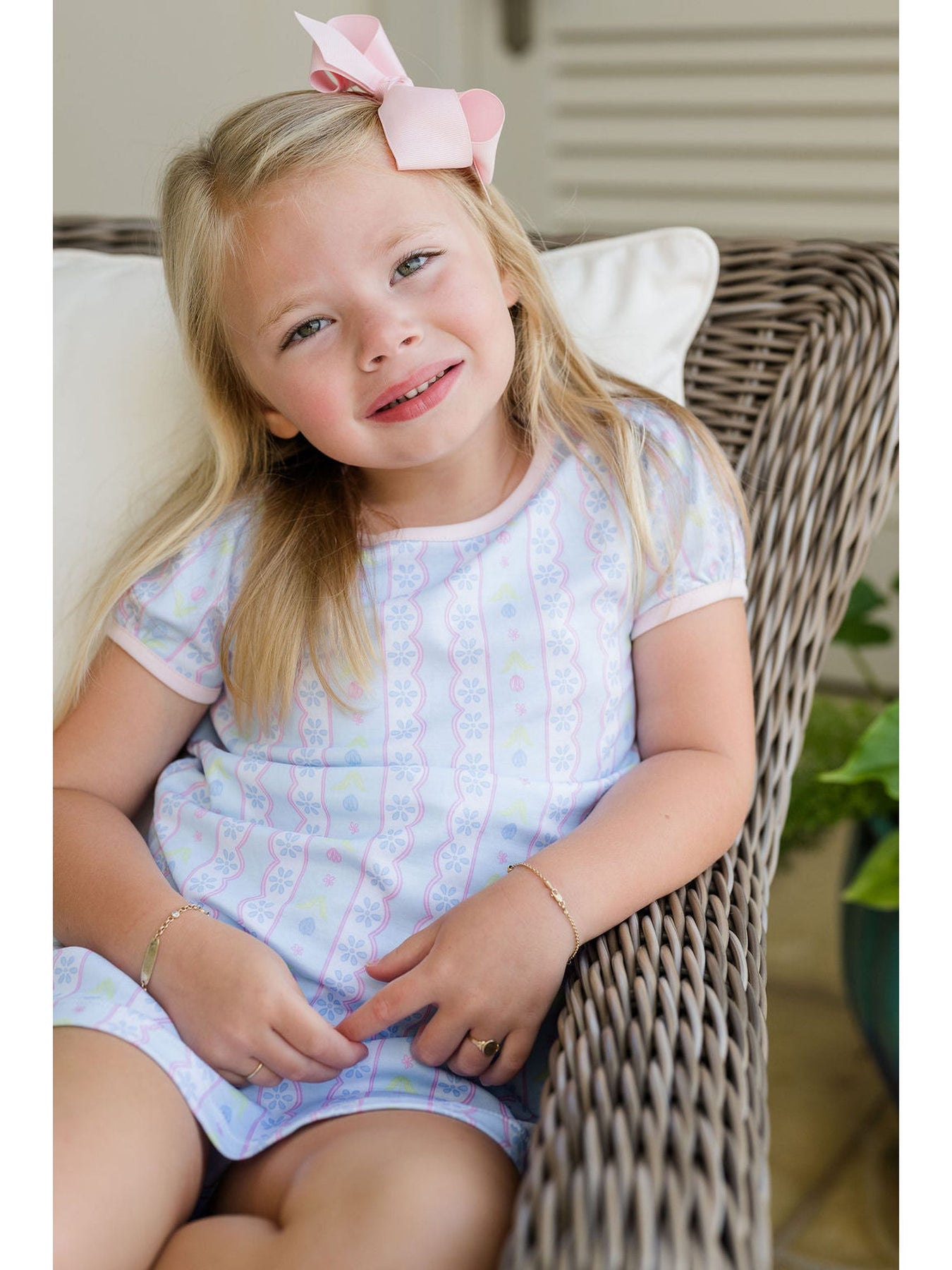 Twirl and play in this adorable floral knit bloomer set! Featuring a charming printed design with vibrant flowers, the swing-back silhouette creates effortless movement for active little ones. Soft, breathable knit fabric keeps her comfortable all day long, while the coordinating bloomers provide coverage and style. Perfect for playdates, casual outings, or cozy days at home. A delightful addition to any girl's wardrobe that celebrates fun, color, and carefree childhood moments.