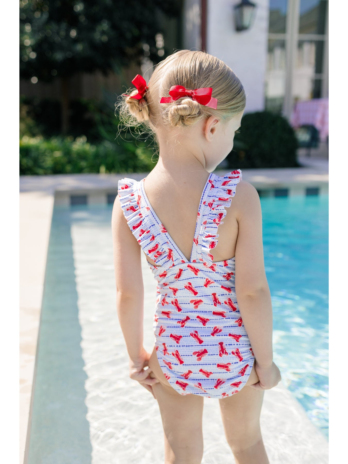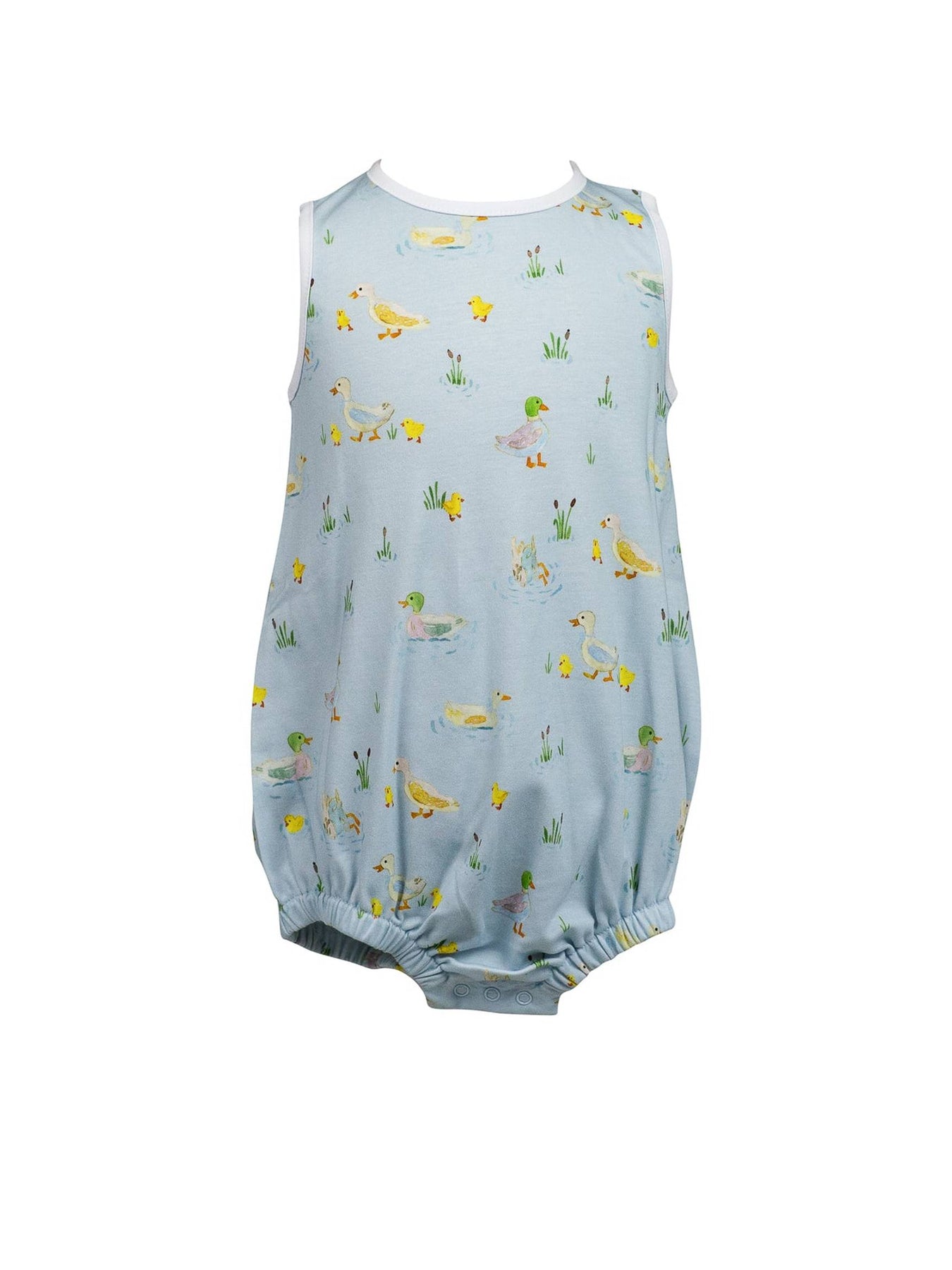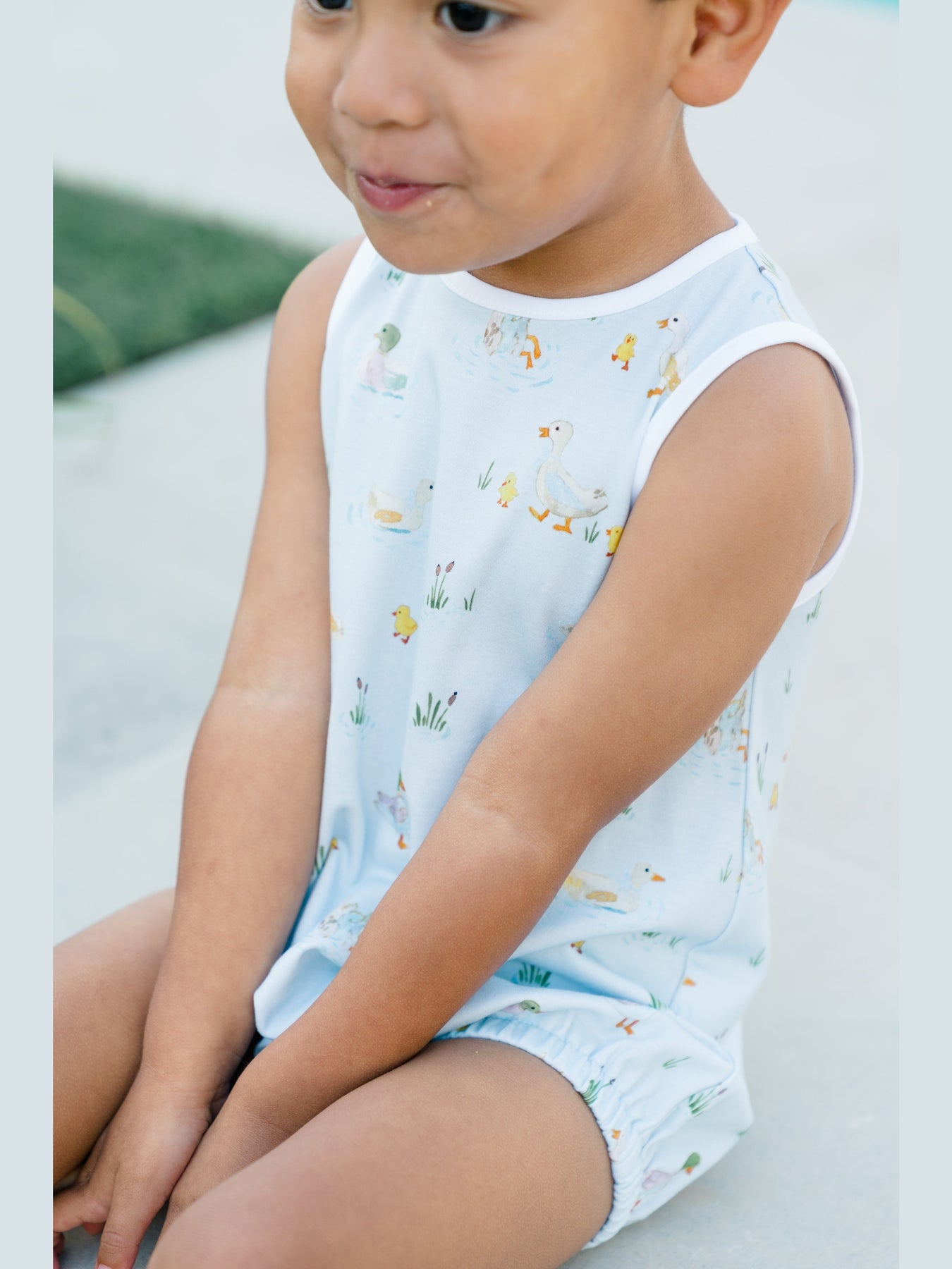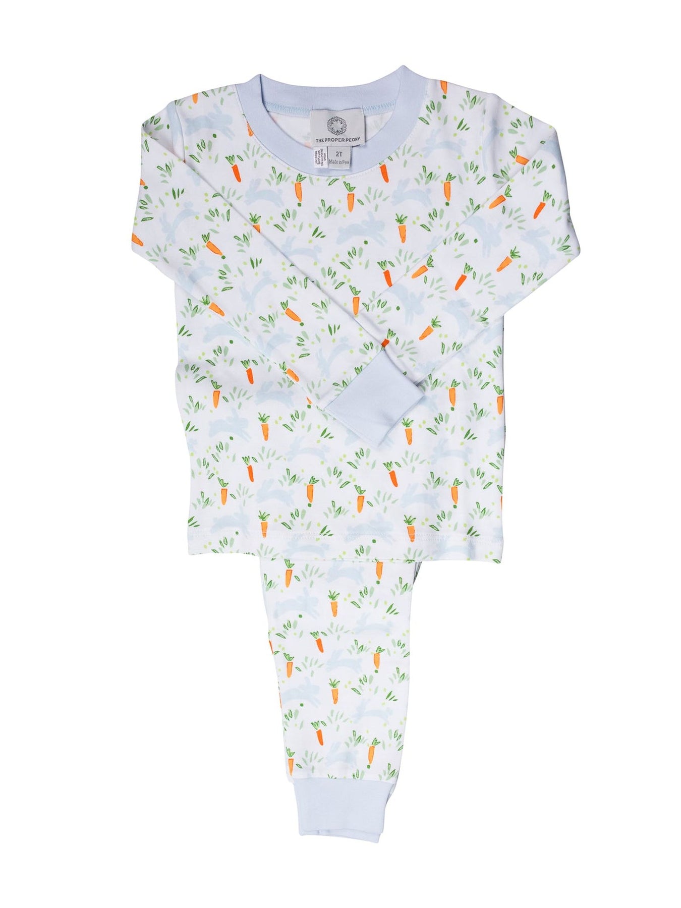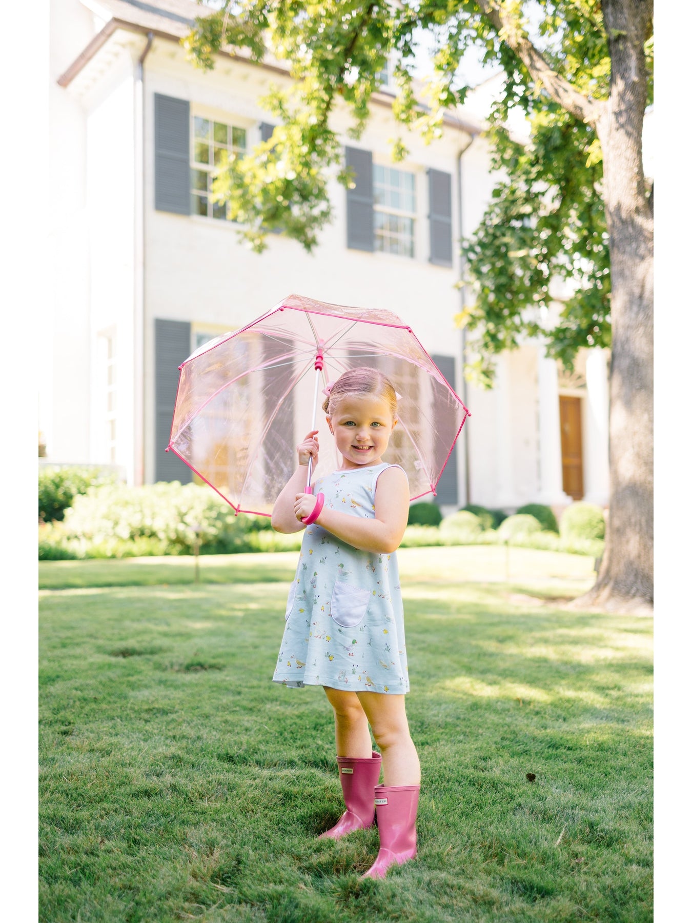 This handsome dressy short set from The Proper Peony’s Classic Collection is ideal for springtime events, family get-togethers, Easter, and special photos. It boasts a white woven peter pan collar shirt with back buttons, blue piping, and embroidered bunny on front. Blue mini-gingham elastic waist shorts add extra color, making this a standout favorite.