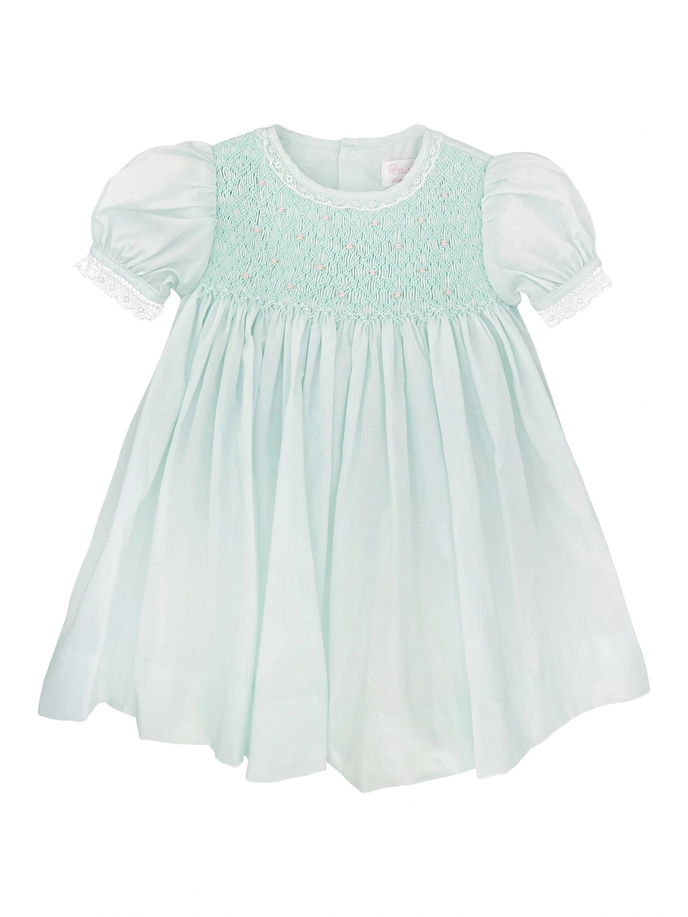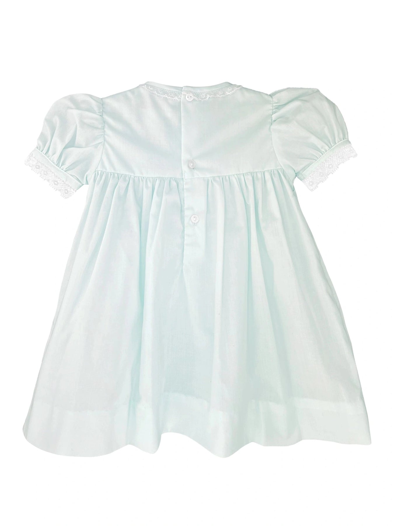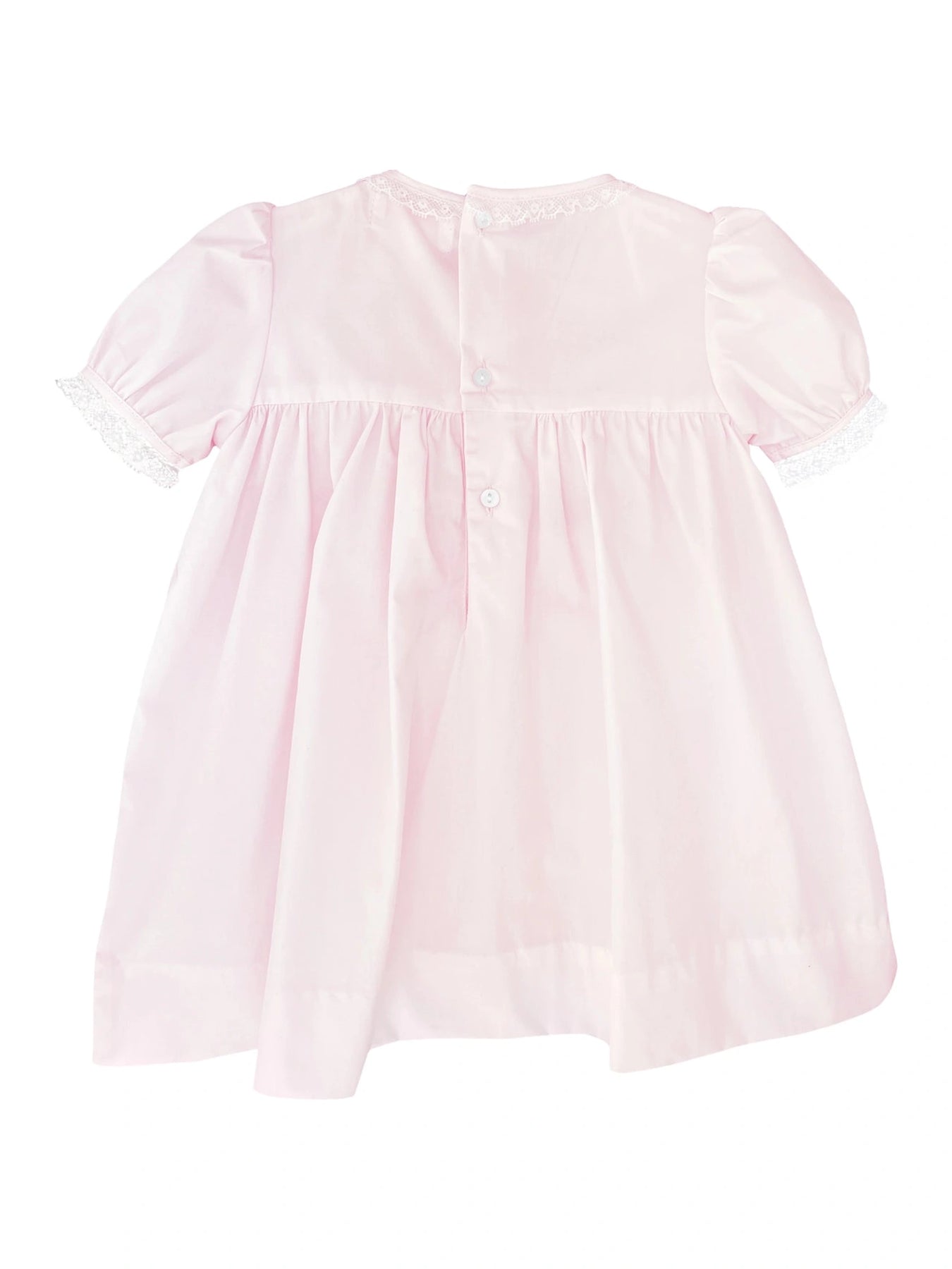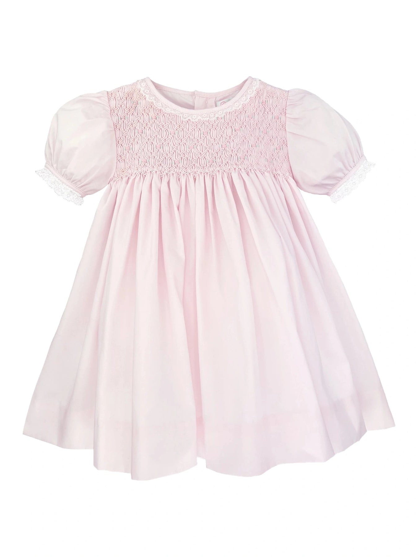 Regular price $34.00Twirl-ready elegance meets comfort in this charming smocked dress! Delicate lace trim frames the neckline and sleeves, adding a touch of timeless sophistication to every occasion. The smocked bodice provides a flattering fit that grows with your little one, while soft, breathable fabric keeps her comfortable all day long. Perfect for parties, playdates, or picture-perfect moments.