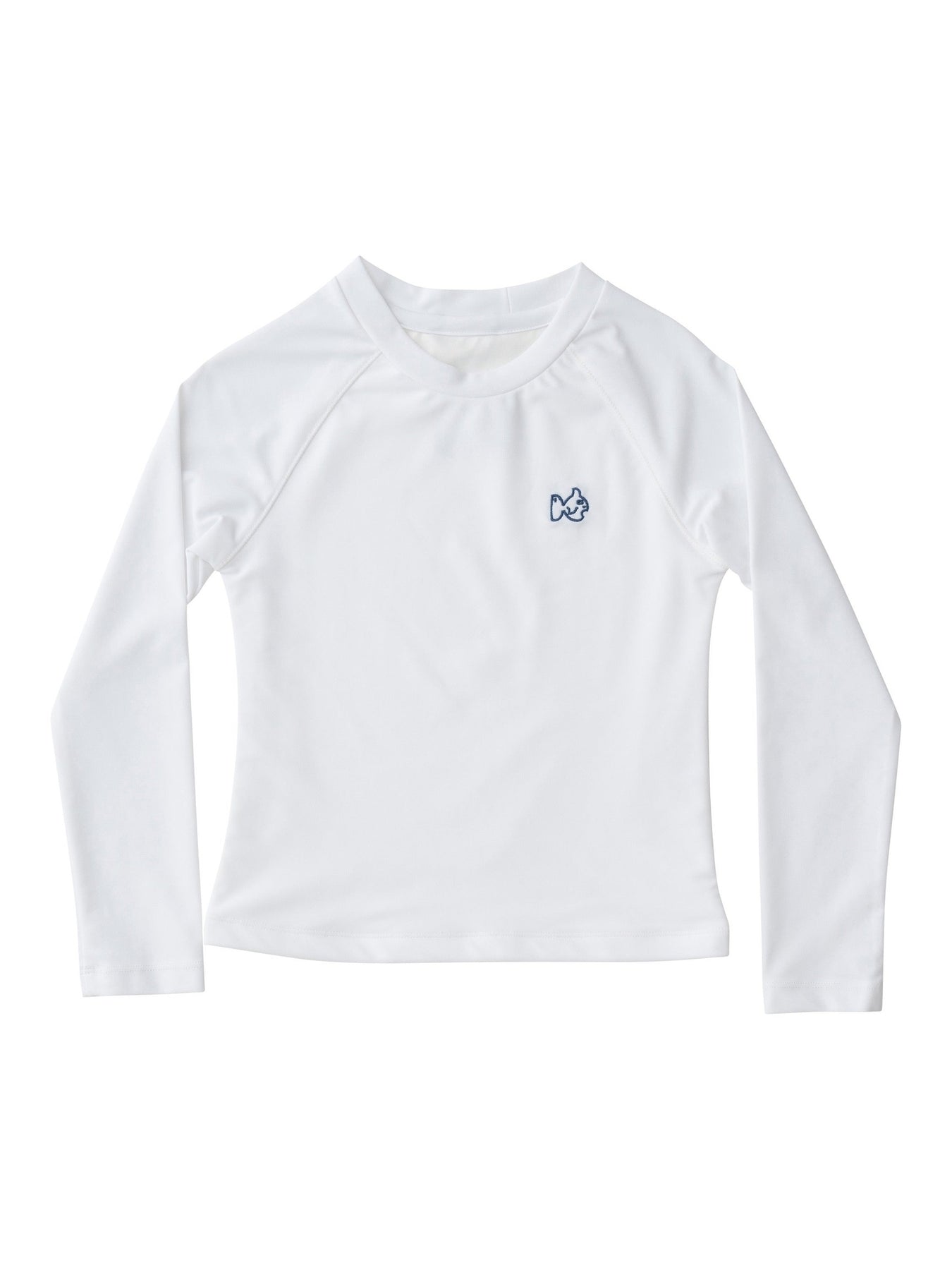 Protect your little one's skin in style with our Reef Rashguard Shirt in bright white. This fun shirt is perfect for days at the beach, providing full coverage and protection from the sun. Say hello to worry-free play!