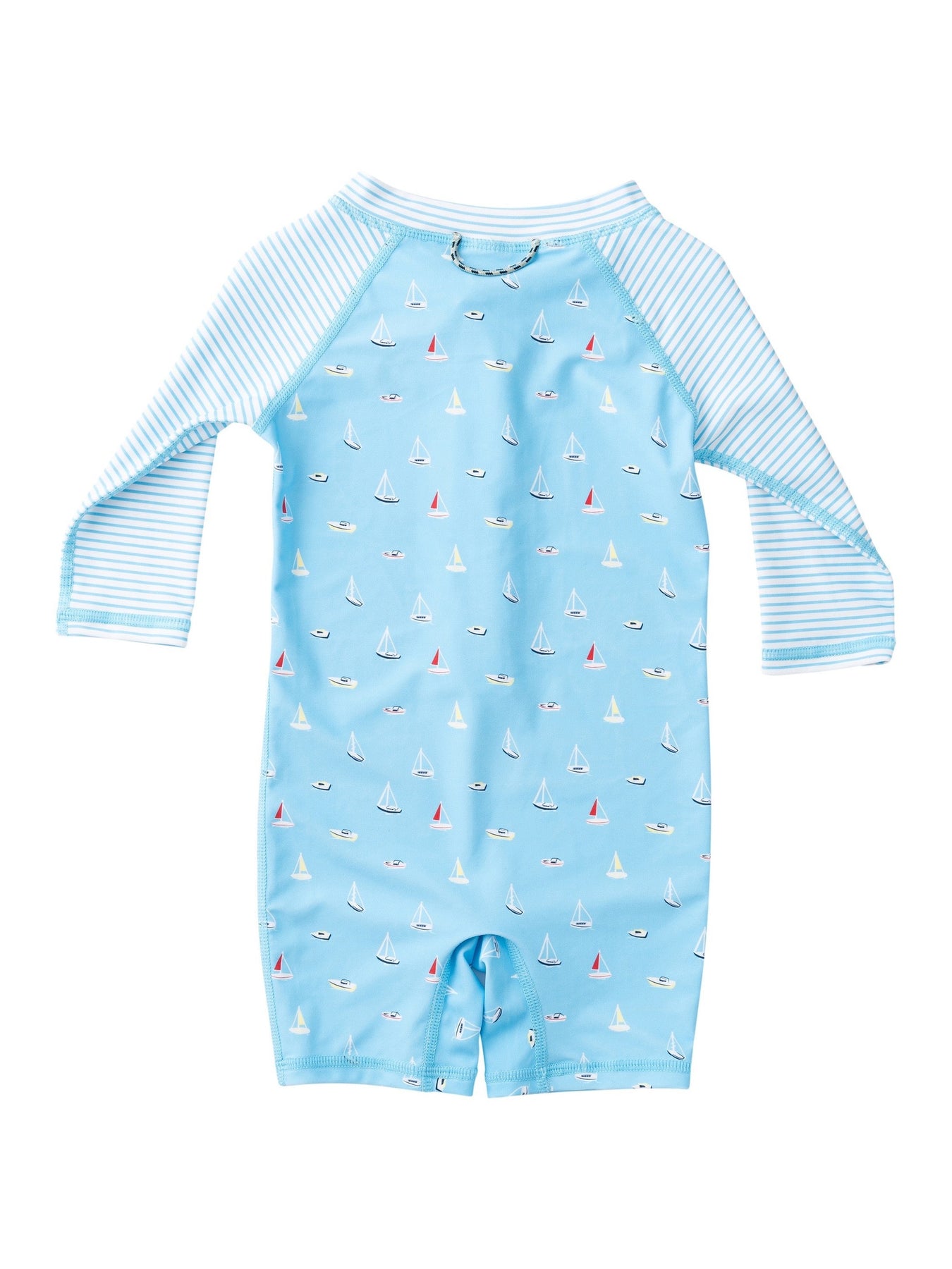 Regular price $50.00Keep your little fishy stylish and protected with the Lil Reef Baby Rashguard Swimsuits! These suits feature a rashguard to protect your little boy's sensitive skin from the sun's rays. Get ready for some fun in the sun with this adorable swimsuit!