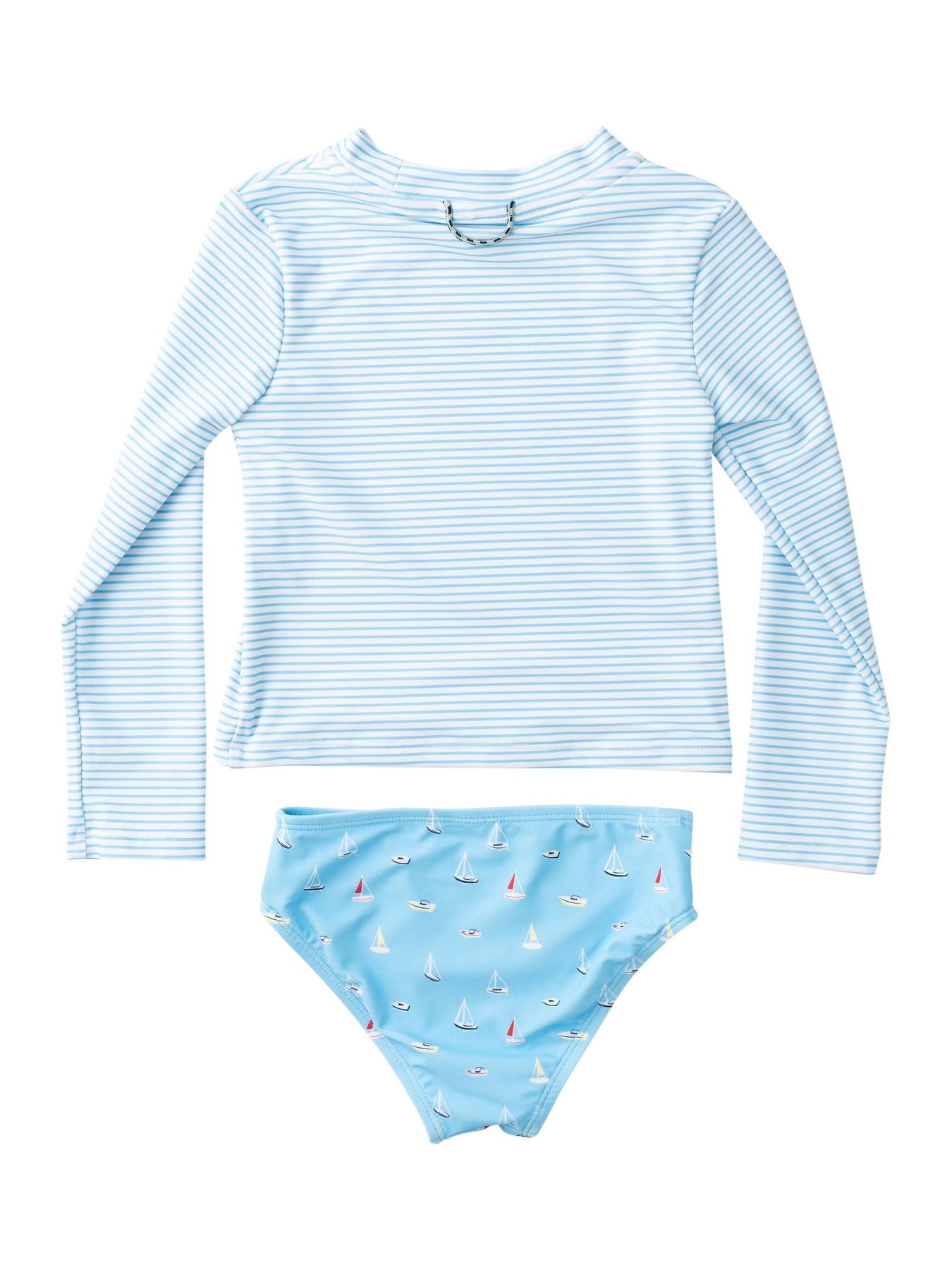 Let your little adventurer make a splash in this vibrant Reef Rashguard Swim Set! Designed for girls who crave coastal vibes and endless water fun, this durable two-piece keeps up with every cannonball and beach day. Built to resist pilling and fading, it stays looking fresh season after season—perfect for passing along to siblings or friends. A timeless choice for families who live for the ocean!