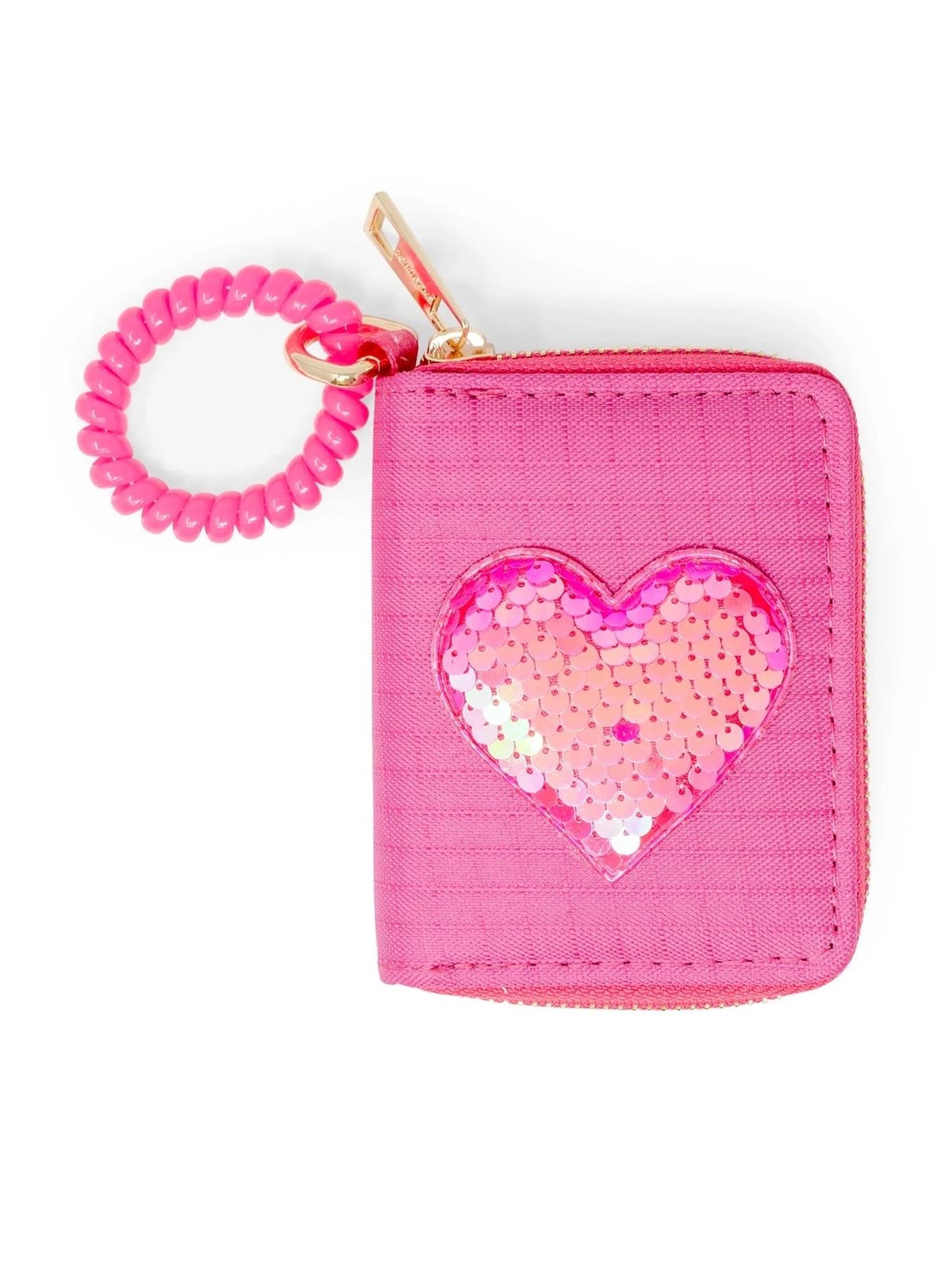 Let your little one shine with our Sequin Heart Spiral Strap Wallet! Featuring a big sequin heart on the front, this wallet is fun and functional with its full zip around closure and multiple compartments. Plus, the spiral telephone color strap adds a playful touch (and a handy way to carry it). Weight: 3oz Size: 3.5L x 4.5W x 5H