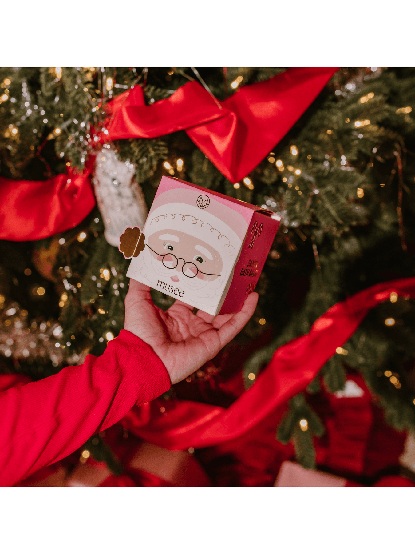Transform bath time into a holiday celebration with this cheerful pink bath bomb bursting with refreshing peppermint goodness. Simply toss it into warm water and enjoy a mesmerizing fizz-and-swirl show as it releases silky, sparkly waters infused with delightful minty aromas. The perfect festive indulgence for a magical seasonal soak.