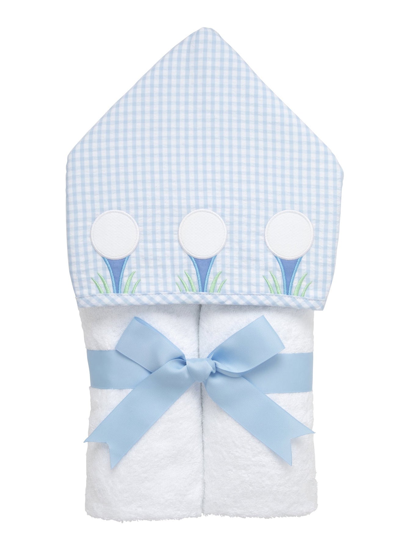 Everykid towels are ideal for older children and also make a wonderful "grow into" baby gift. They feature a terry lined hood, which is sewn to a long side of the towel and is embellished with one of our signature appliques. Perfect for bath, beach or pool time; each towel comes ready for gift giving - rolled and tied with a beautiful grosgrain ribbon.