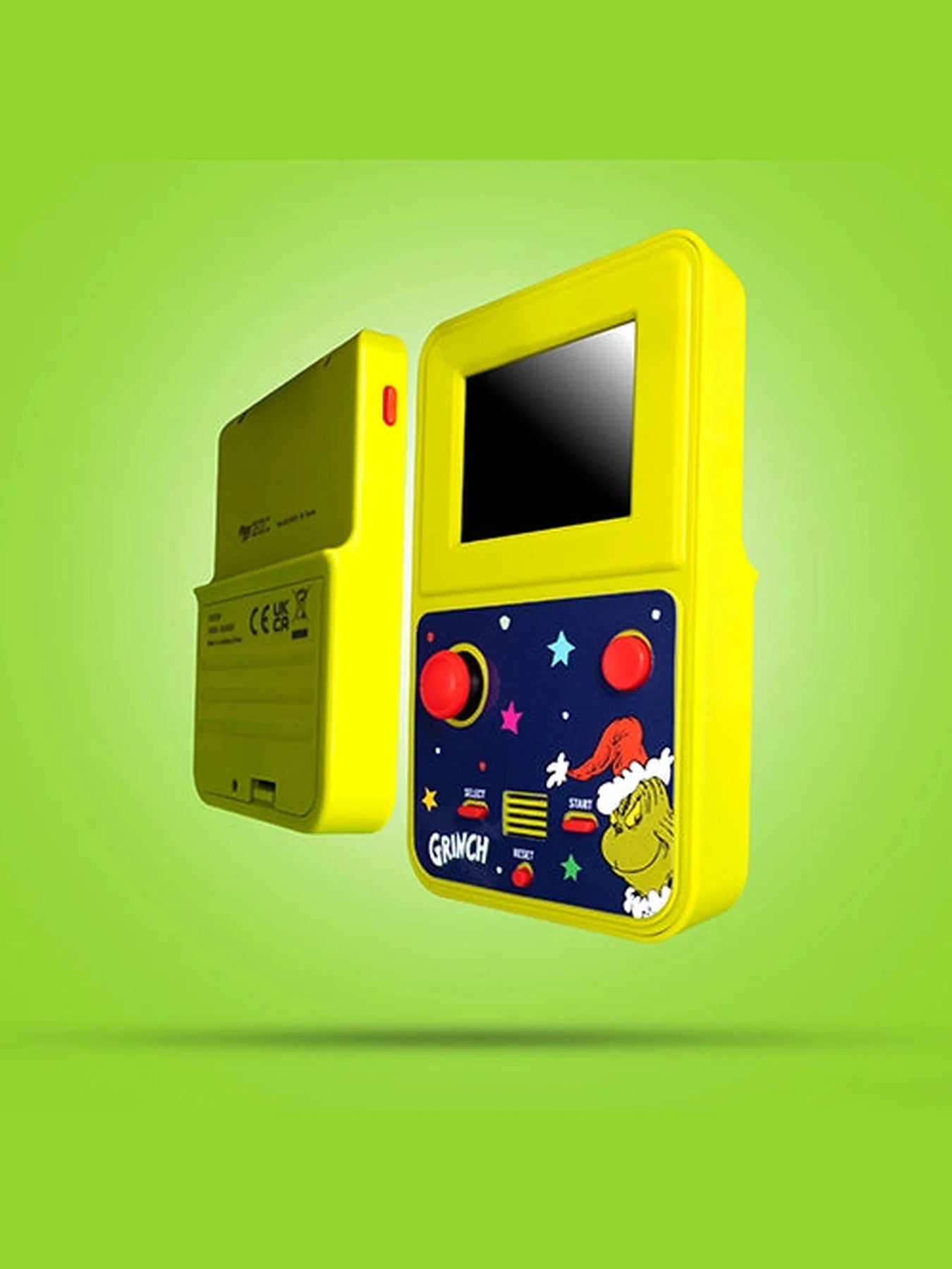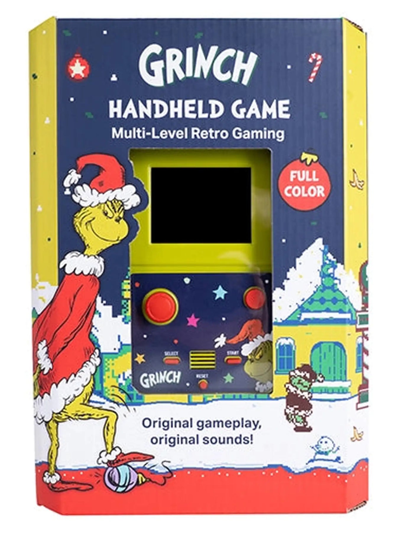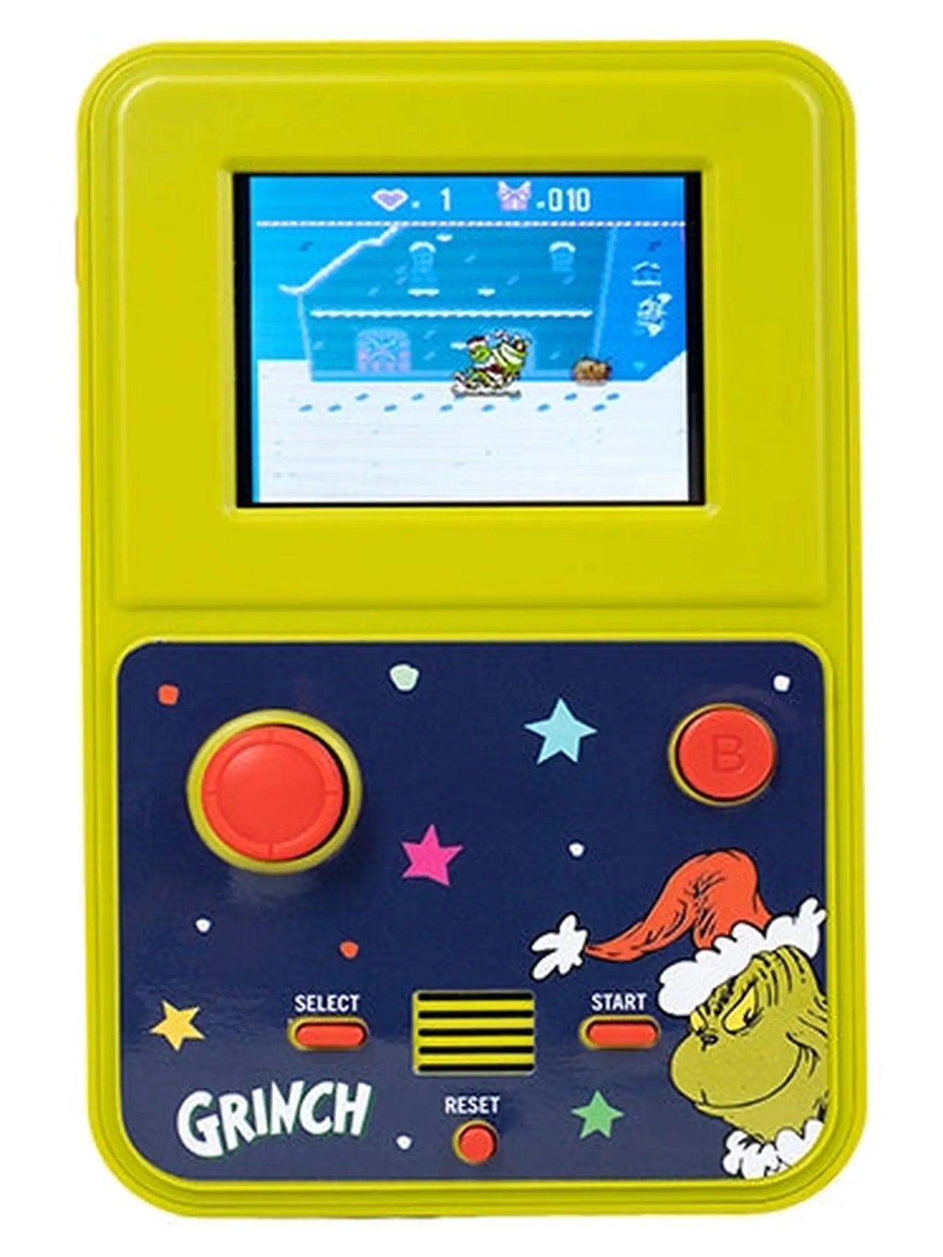 Regular price $34.99Step into the fuzzy green shoes of the Grinch and race through snowy Who-ville in this handheld arcade game packed with festive mischief! Speed through three challenging levels on your sleigh, collecting presents, dodging snowballs, and avoiding pesky Whos as you rack up points. With original gameplay, dynamic music, and a vibrant color screen, this game brings Christmas chaos to the palm of your hand. Just don’t lose all your sleigh’s hearts—or it’s game over! Play as the Grinch: Dash through Who-ville in single-player mode, stealing presents and dodging obstacles. Multi-level Arcade Action: Three festive levels filled with platform jumps, checkpoints, and item boosts. Bonus Items & Hazards: From invincibility to slippery bananas—each item adds a twist to your sleigh ride! Adjustable Volume & Controls: Includes joystick movement, pause/reset/start buttons, and toggleable HUD. Portable Fun: Compact green handheld with 2″ x 1.5″ color screen; requires 4x AAA batteries (not included).