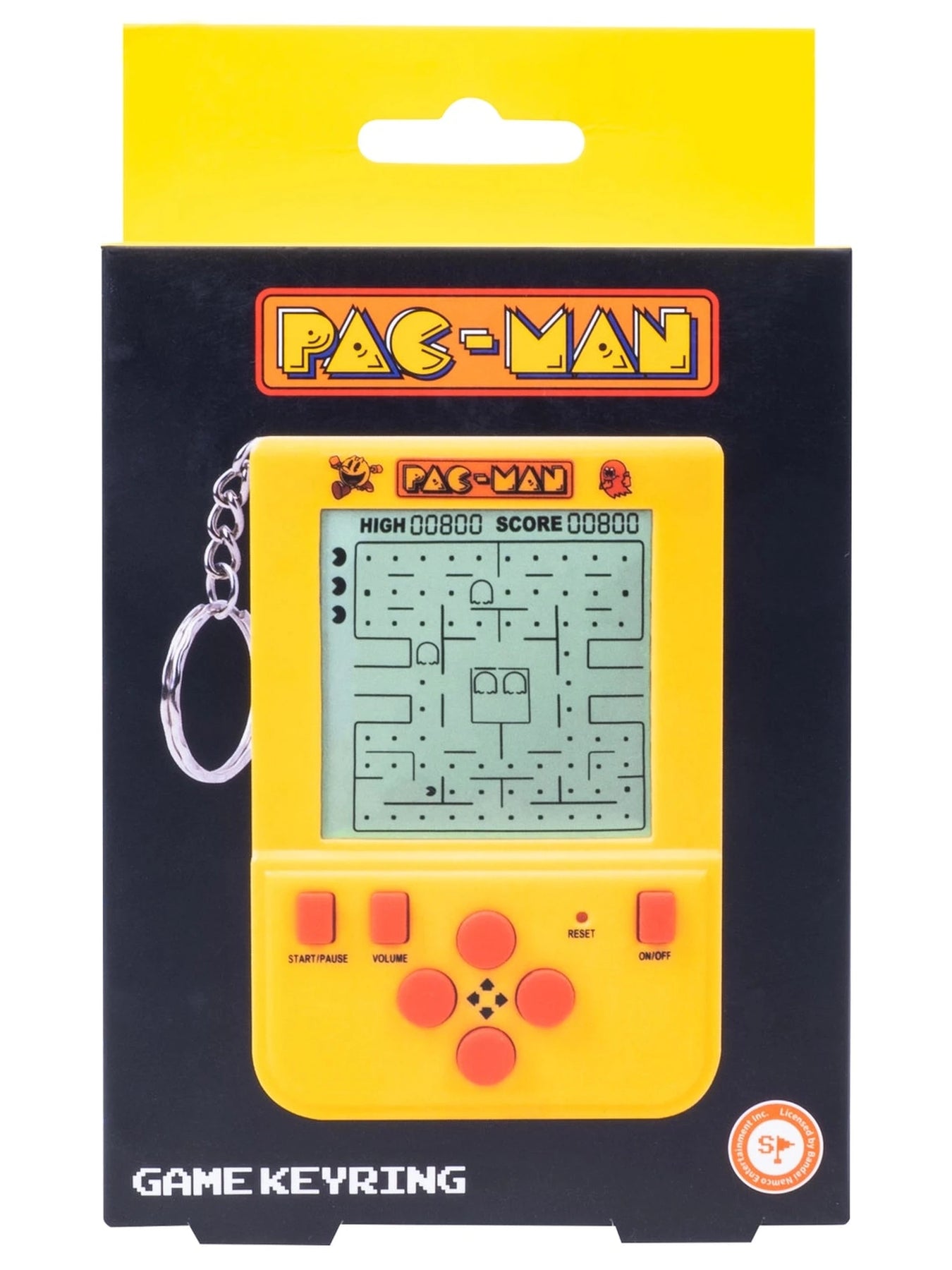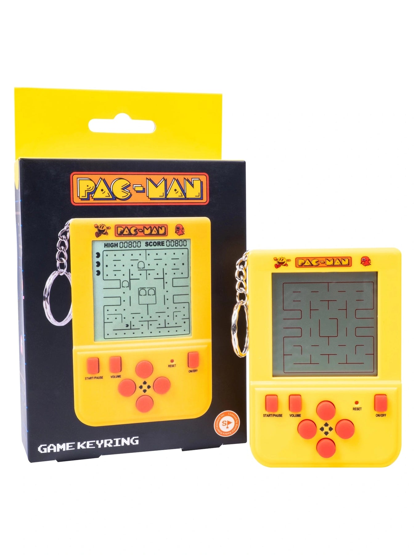 Regular price $17.50Take the nostalgia of PAC-MAN with you wherever you go with the PAC-MAN Keyring Game, a handheld arcade device in vibrant yellow with bright red buttons. This pocket-sized keyring features the full classic 8-bit game, complete with official gameplay and original sounds, all on a compact black-and-white 2.5" square screen. At just 3.75" tall, this mini arcade game is perfect for gaming on the go and easily attaches to your keys or bag. A great gift for PAC-MAN fans, this portable game runs on 2 AAA batteries (not included), making it a fun and functional retro collectible.