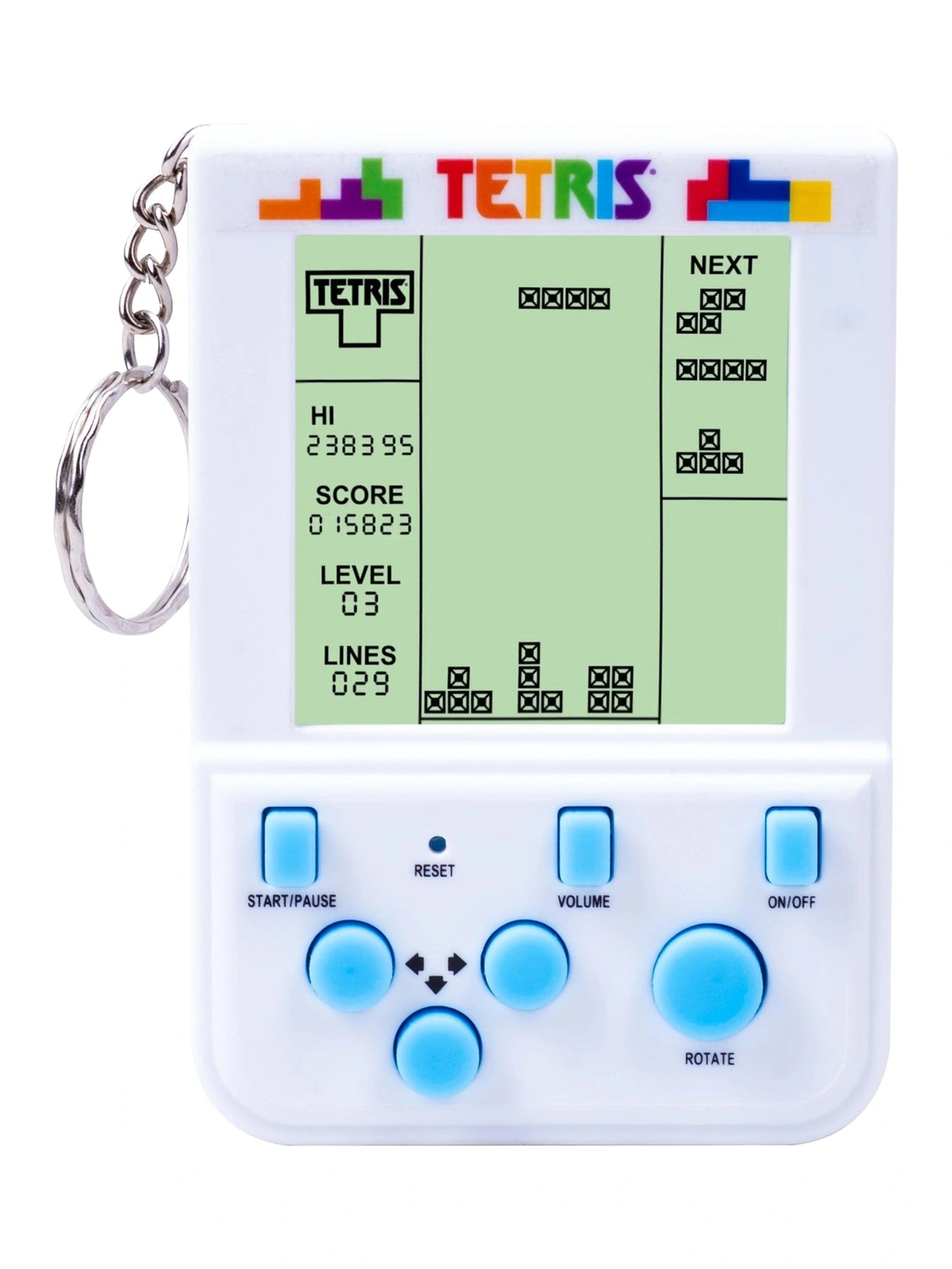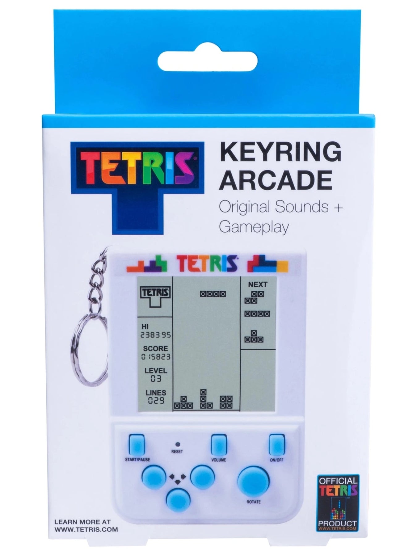 Regular price $17.50Enjoy the iconic Tetris game with this keyring arcade featuring: – Original Sounds – Official Game Play – Black & White Screen Two different game modes: Marathon – Can you go the distance? Traditional gameplay with 15 levels Sprint – Get ready to race! How fast can you clear 25 lines? Requires 2 x AAA batteries (not included)