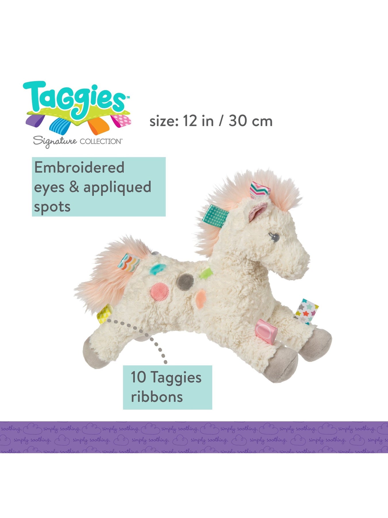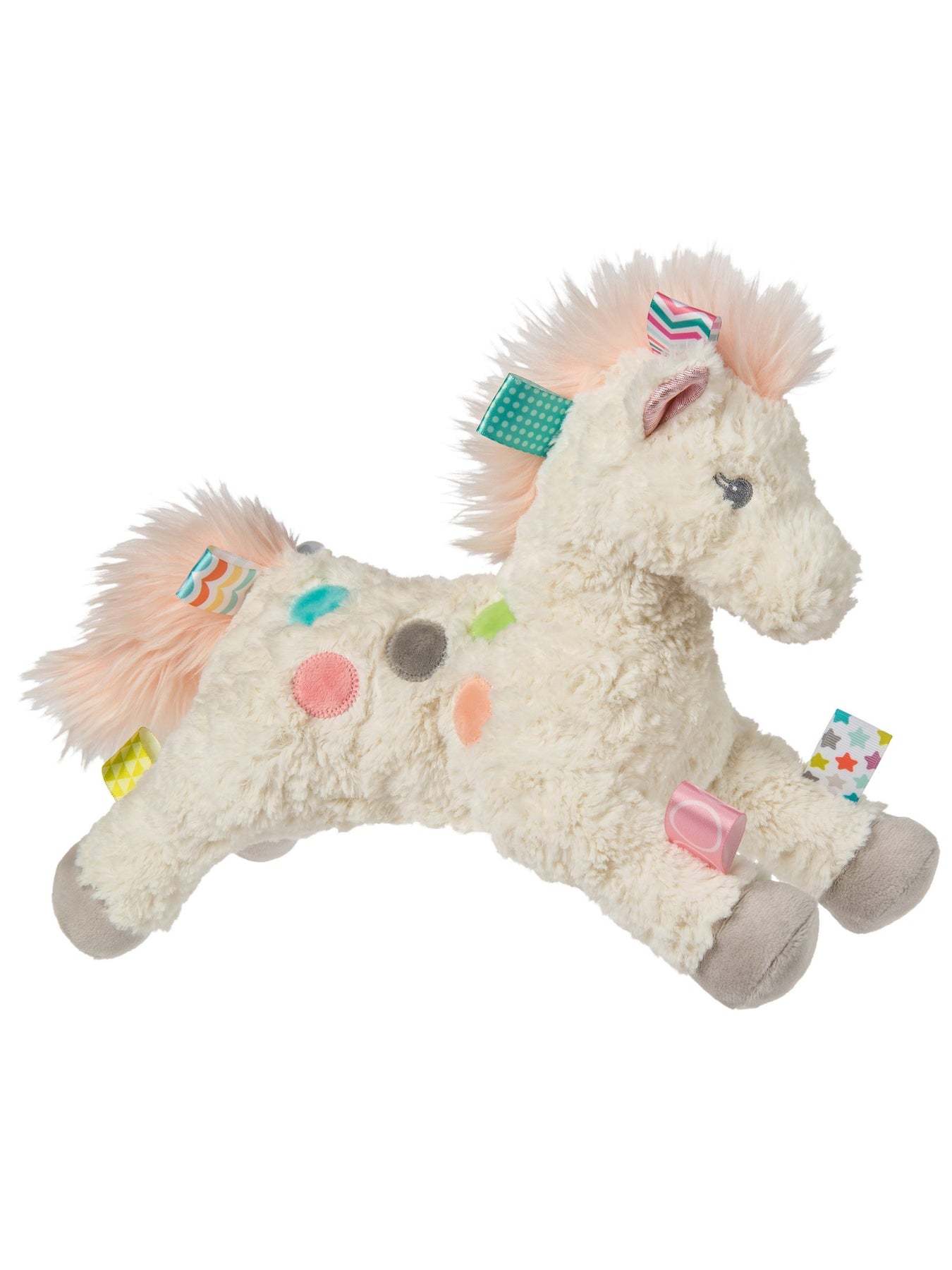 Regular price $29.00It’s like a pony ran smack into a creamy cupcake. Sweet, on-trend colors. So many glam details. Appliqued spots, sparkle trim, eyelashes, and a silky mane. Inspired by our very popular FabFuzz Calliope Pony. 10 Taggies looped ribbons adorn this cutie. Appliqued spots and embroidered eyes and other details. Machine wash, air dry.