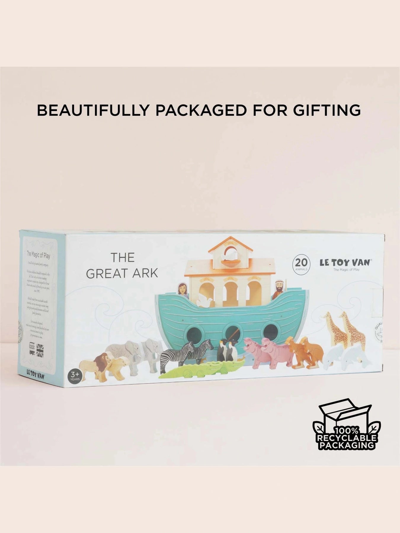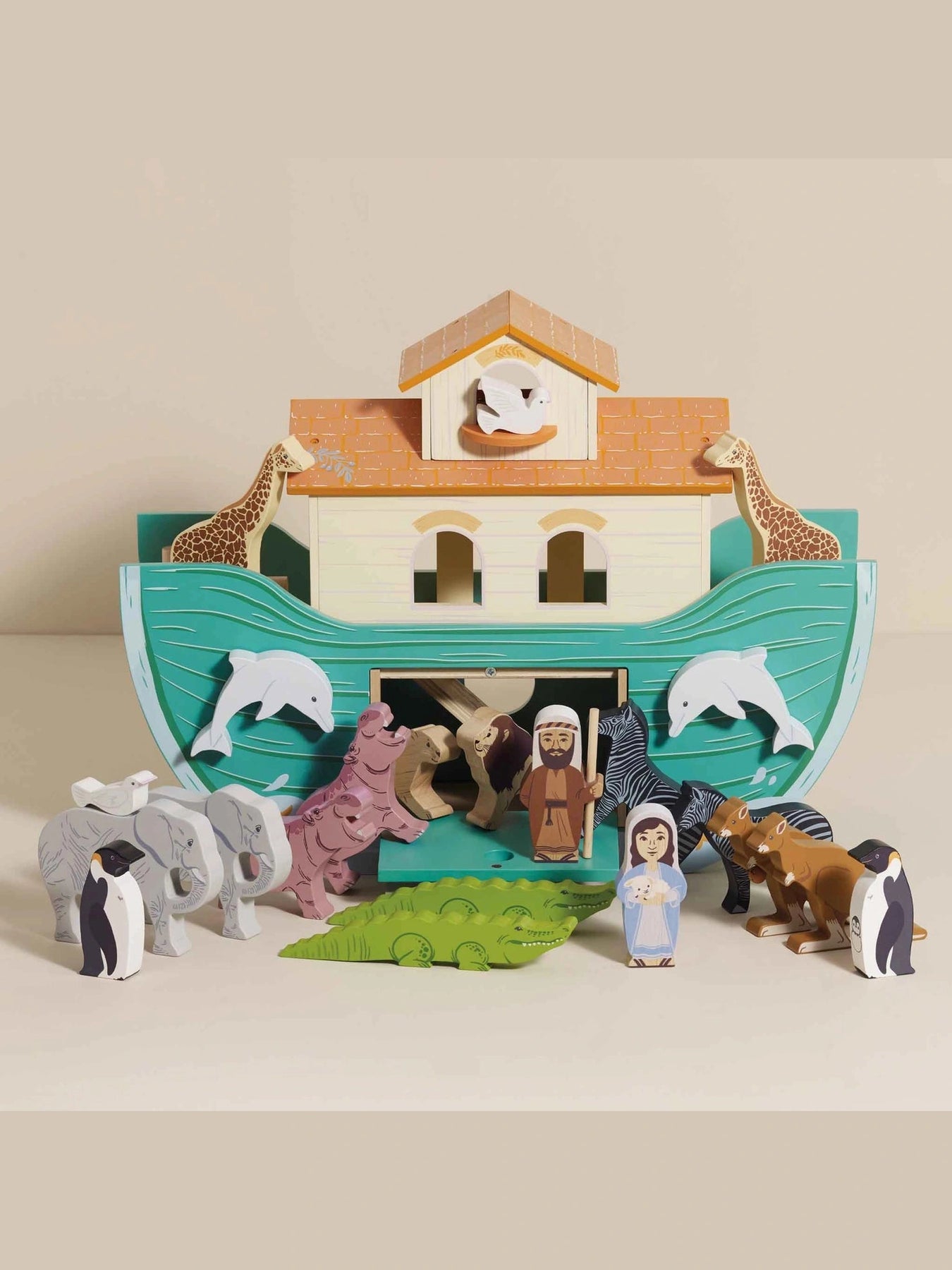 Regular price $129.95We love this traditional toy, full of fun and ready for playtime adventures. Teach little learners the wonderful story of Noah's Ark and inspire small-world play with this delightful set. This sustainable wooden toy is a classic, comprising a big beautifully painted wooden ark complete with 10 pairs of hand-finished painted wooden animals plus Noah & his wife too. Full of fun features, discover the sliding panel in the hull & the hinged front hatch to allow the animals to safely board and disembark the ark during imaginative play. Designed to aid development and encourage dexterity and cognitive skills. -Suitable for ages 3 years+ -Made of FSC®-certified wood -Plastic-free toy -Decorated with non-toxic, water-based resistant paints