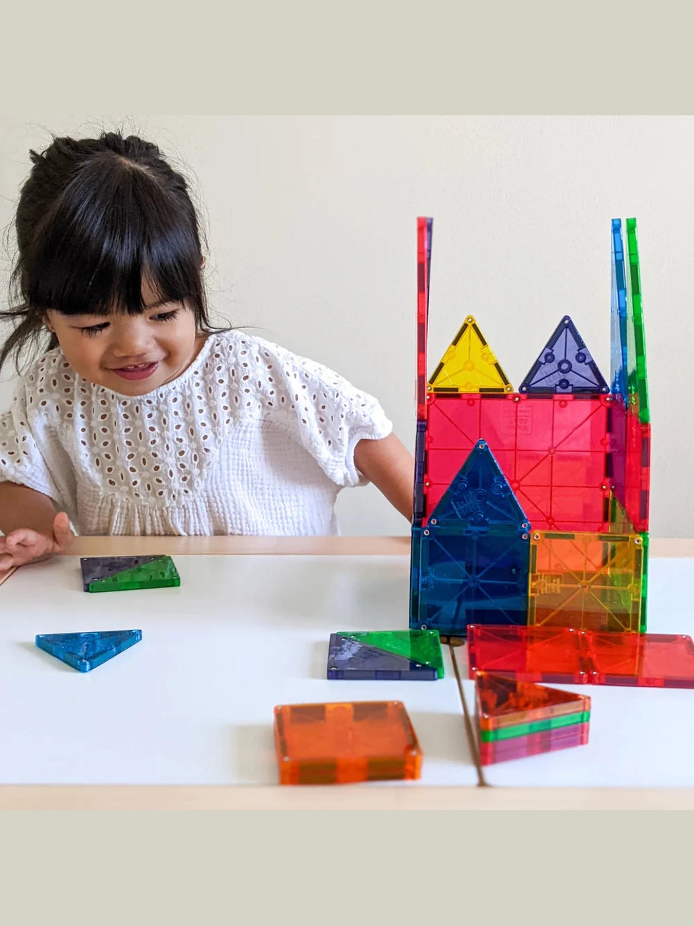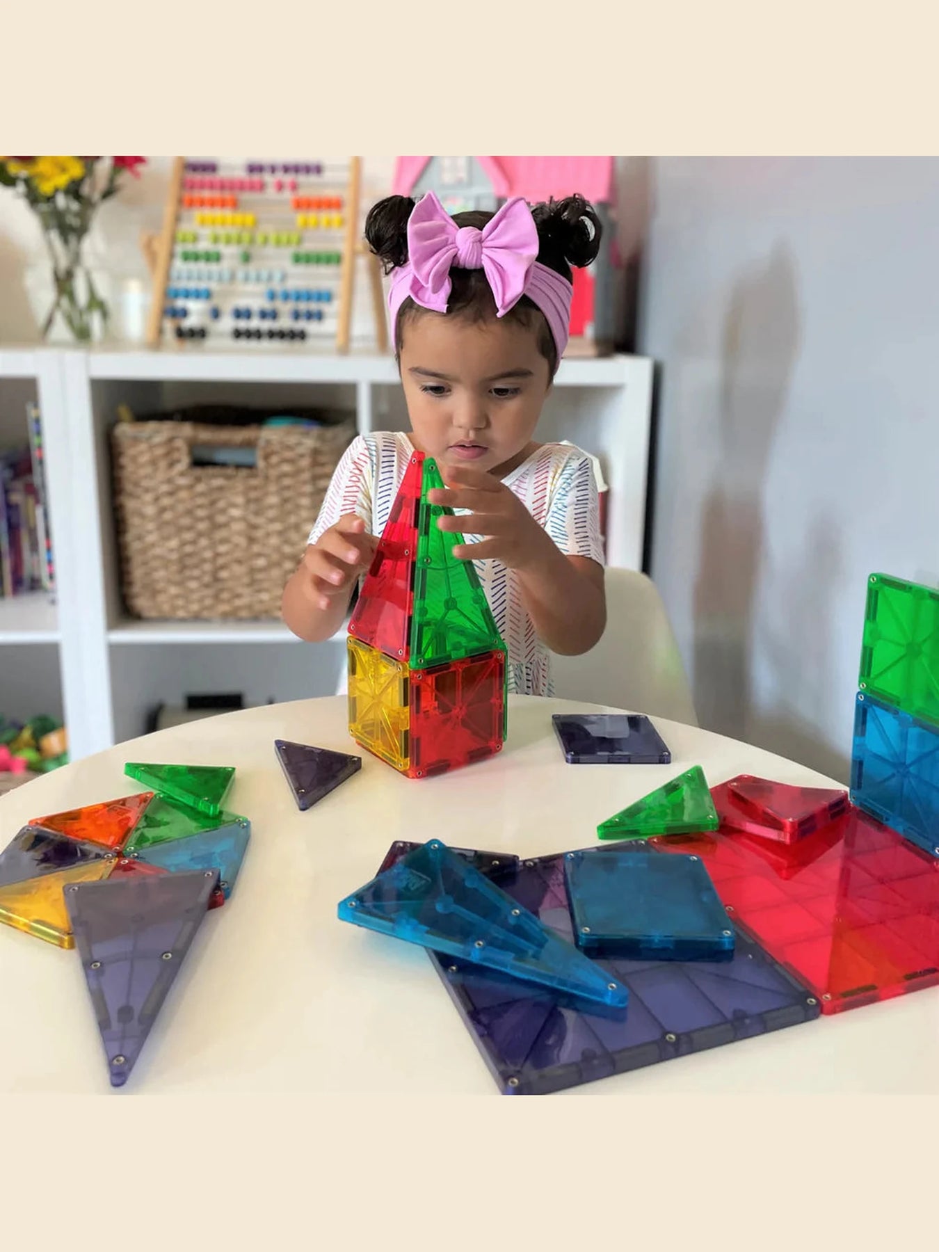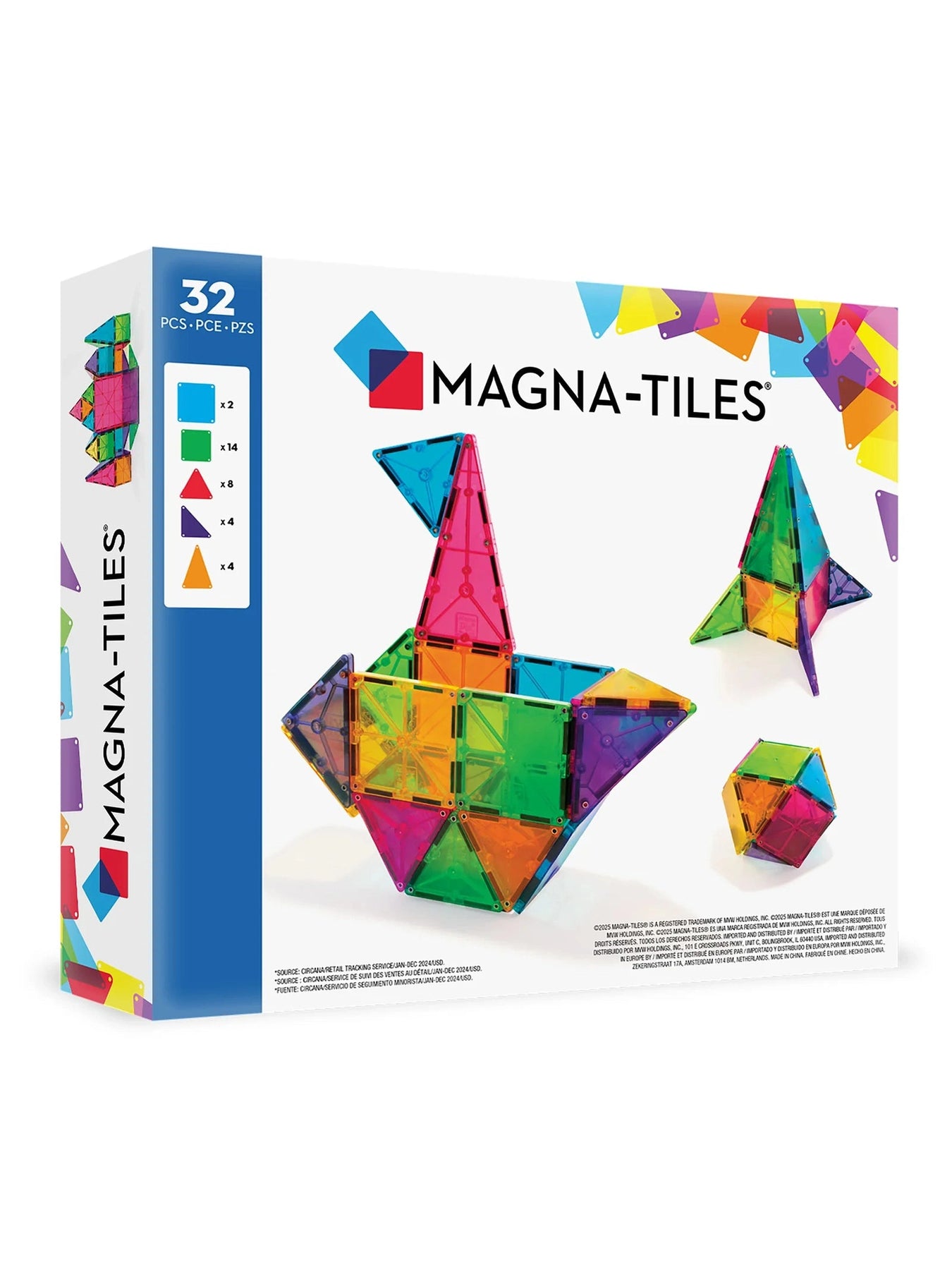 Discover endless fun with the Magna-Tiles Classic 32pc. Set! Perfectly sized for little hands, these vibrant magnetic tiles click and connect to build colorful shapes and structures. Ideal for screen-free play, children can explore colors, shapes, and basic building skills while stacking and sorting. This timeless set encourages creativity and learning, making it a favorite for family fun that lasts for years.