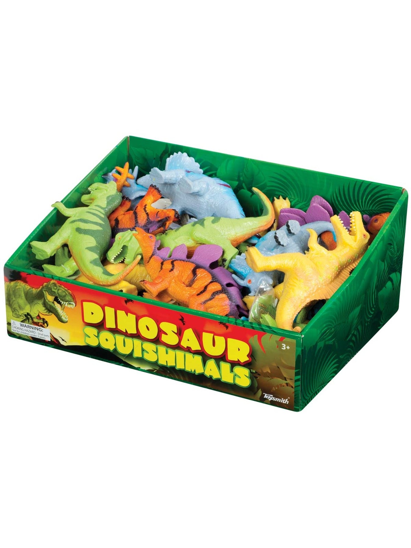Regular price $5.50A must have for young dinosaur lovers, Toysmith’s super squishy and ultra-stretchy Dinosaur Squishimals range in size from 5–8 inches before stretching, and come in a variety of colors and dinosaur types. Each dino squish-and-stretch toy is filled with beads and features a soft, pliable skin for sensory satisfaction. Dinosaurs can be pulled with both hands for ultra-stretchy fun and will always return to their original shape. From keeping kids entertained at home or on the go, toss them in a purse, backpack or carry-on bag, they’re perfect for learning shapes, colors, and different dinosaur names. These toys are both fun and educational. A rainforest themed Dinosaur Squishimals display case holds an assortment of brightly colored dinosaurs. *Please note that these are not plush • Age Grade: 3+ • Product Dimensions/Weight: 1.8 L x 8.0 W x 3.3 H / 0.2 lb • Inner Pack Dimensions/Weight: 12.5 L x 9.6 W x 5.6 H / 4.3 lb • Made In: China • Batteries not required