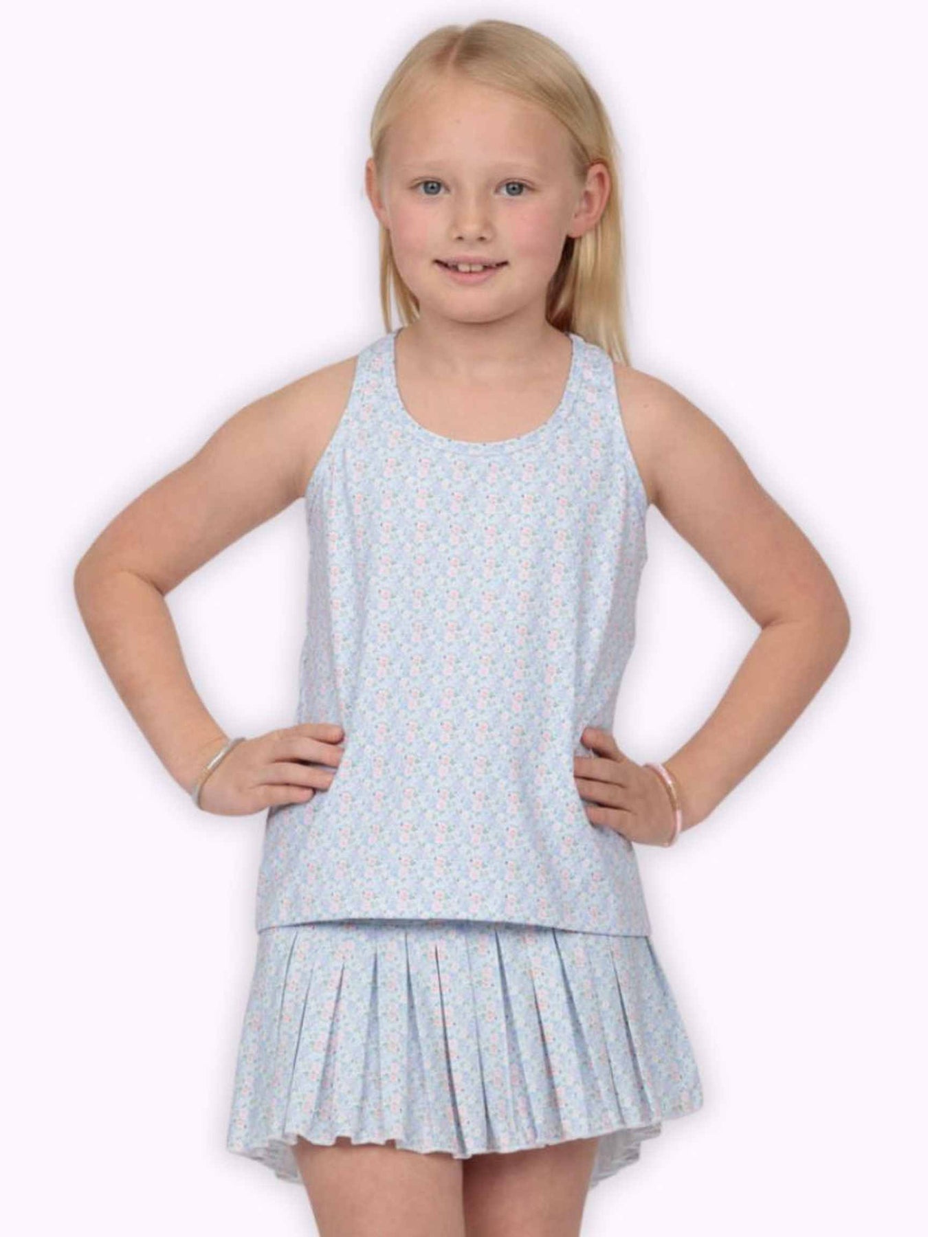 The Margaret Blue Floral Dress is a timeless style with smocked bodice, white ruffle collar, and ruffle cap sleeves. It's made for sweet moments and special days. Crafted in a blue floral print, tone on tone, with a sophisticated silhouette, it's the perfect dress for special occasions, portraits, and celebrations.