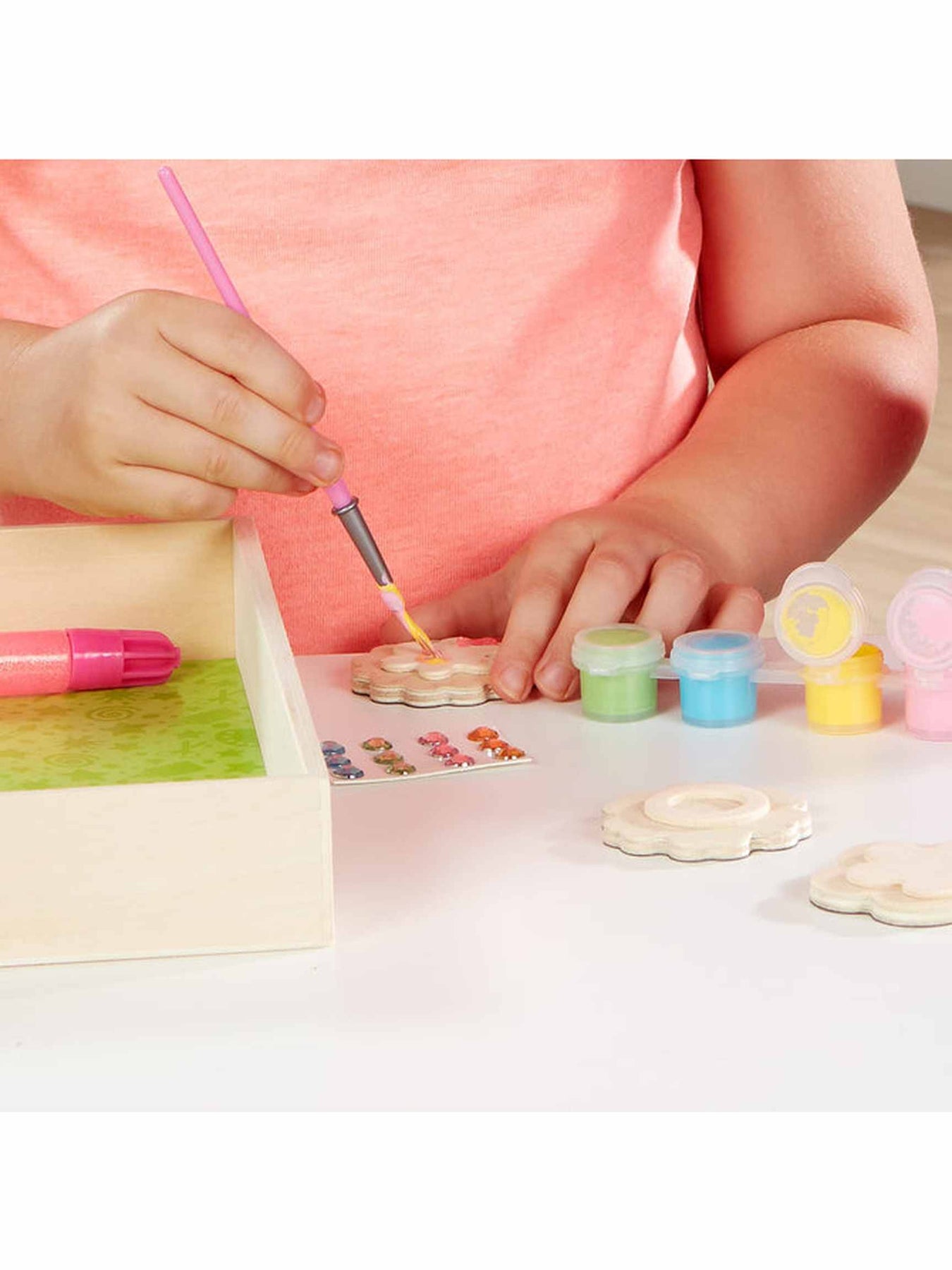 Includes 4 colors of paint, paintbrush, 12 gem stickers, glitter glue